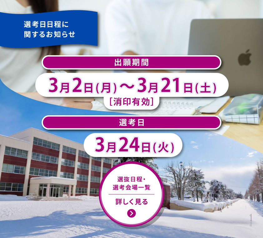 2026.02.19入試【令和8年度 入学生対象】給付奨学生採用候補者の自宅外月額支給早期化に係る手続きについて 2026.01.21入試【令和8(2026)年度入学予定の方へ】「こども性暴力防止法」施行に伴う教育実習に関するお知らせ 2026.01.19入試令和7年度2月の学校説明会(東京渋谷会場)インフォメーション! 2025.12.11入試令和8年度大学入学共通テスト利用選抜 成績請求情報の提供方法(チケット方式)および学科・コース特色型選抜受験希望の受験生へ 2025.11.20入試12月4日放課後進学相談会