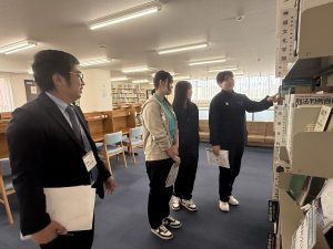 9月18日、滝川西高等学校 2年 情報マネジメント科の3名の生徒が、探究活動の一環で「事業所訪問学習」のため本学を訪れました。国学院大学の歴史と沿革、建学の精神、短期大学部の設立の経緯・キャンパスライフのほか、企業経営と学校経営の違い・特色などに触れながら、本学について紹介しました。