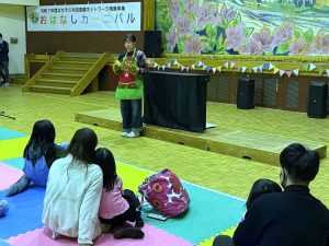 幼児・児童教育学科 幼児保育コースの学生と今野道裕教授が、なかそらち図書館ネットワーク推進事業「おはなしカーニバル」に参加しました