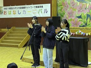 参加した学生からは、「子どもたちの反応を受けながら進める難しさも感じたが、子どもたちの表情や積極的に楽しむ姿を見ることができて嬉しかった」、「他の出演者の読み聞かせ等の出し物も見ることができたので、楽しみながら表現や工夫の仕方を学ぶ時間にもなった」などの感想がありました。
