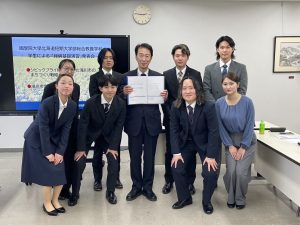 11月25日、滝川市役所において、本学学生によるまちの魅力づくりの提案・意見交換会が開かれ、代表の学生7名が前田康吉市長はじめ、関係部署の方々に2つの学習成果を発表し、レポートを前田市長に手渡しました。