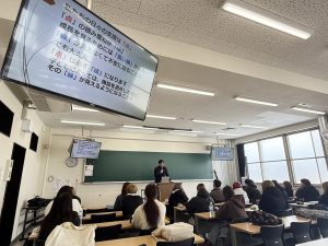 11月27日には児童養護施設「美深育成園」園長  長野稔氏、12月4日には、しょうがい児入所施設「美唄学園」園長  林寺隆憲氏をお招きし、各施設の概要や日々の取組み、さらに実習に臨むうえでの心構えなどについてお話しいただきました。