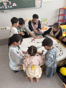 子育てサロン「ありす」は、お父さん、お母さん、お子さんのための広場で、月に1回、本学プレイルームにて開催しています。スタッフは本学を卒業した保育士の他、幼児・児童教育学科 幼児保育コースの学生が授業の一環で参加し、読み聞かせや手遊びを担当しています。
